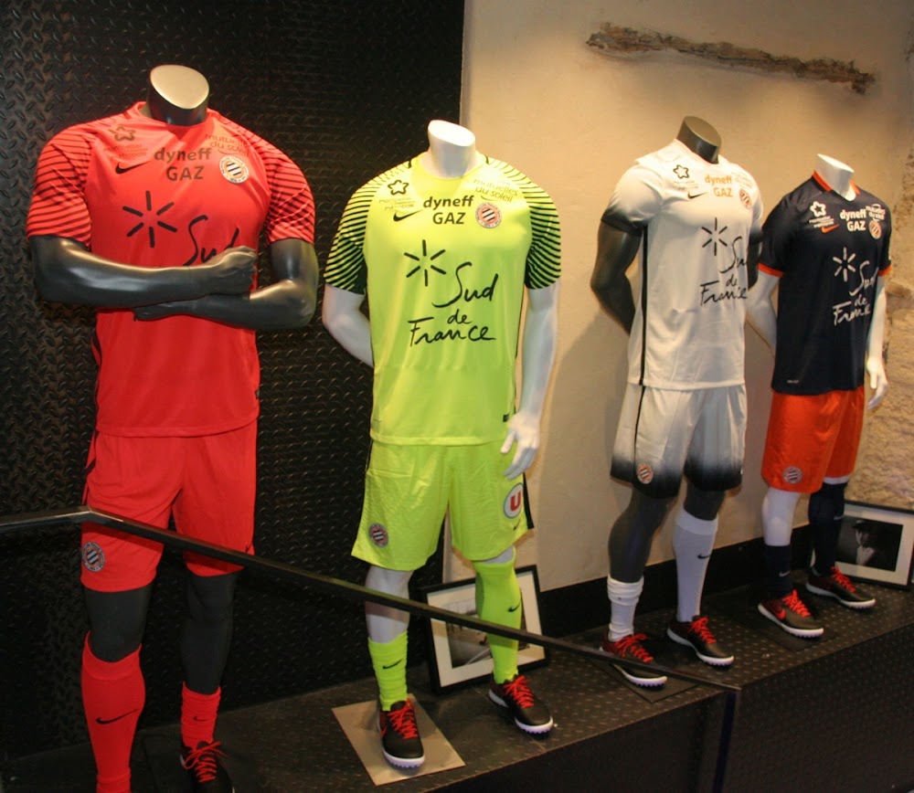 Das sind die zwei neuen Montpellier-Torwarttrikots und normalen Trikots.
