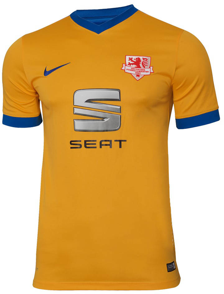 Das neue Braunschweig-Trikot, das in der 2016-17 Saison getragen wird, kombiniert die Hauptfarbe Gelb mit blauen Details. Das neue Braunschweig-Trikot, das auf dem Nike 16-17 Striker IV Teamwear-Trikot basiert, weist einen einfachen V-Kragen und einen blauen Streifen auf den Ärmeln auf.