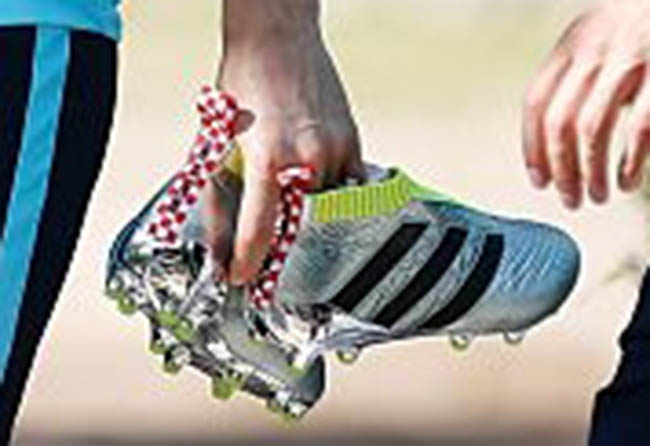 Wie es bei Paul Pogbas Adidas Ace 16+ PureControl EM 2016 Fußballschuhen der Fall ist, zeichnen sich Ivan Rakitićs Schuhe für die entscheidende Phase des Turniers durch ein besonderes Design auf der hinteren Lasche aus. Neben dem berühmten, rot-weißen Schachbrettmuster weisen die Schuhe auch einen besonderen Schriftzug auf der Ferse, der noch nicht genau identifiziert werden konnte, auf.