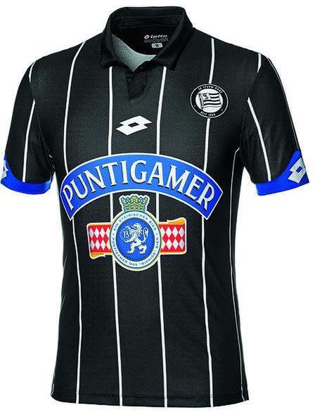 Das Sturm Graz 16-17 Trikot setzt auf die traditionelle schwarze Grundlage mit vier weißen Längsstreifen auf der Vorderseite des Trikots und zeichnet sich durch ein allgemein klassisches Design aus. Blaue Details runden das klassische Design des Sturm Graz 2016-17 Trikots neben einem traditionellen Polokragen ab.