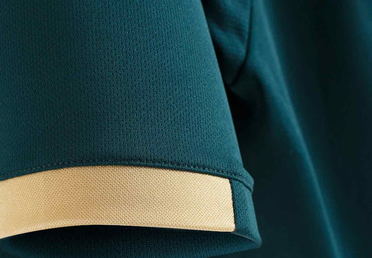 Das Nantes 2016-2017 Trikot, das hauptsächlich grün ist, kombiniert die Farbe mit klassischen Details in Gold - insbesondere die Umbro- und Synergie-Sponsorenlogos sowie Teile der Ärmelenden. Das Innere des Trikots ist ebenfalls golden, zumindest im Nackenbereich. Hosen und Stutzen im gleichen Stil, in Grün mit goldenen Details, komplettieren den kultigen Look des neuen Nantes-Trikots.