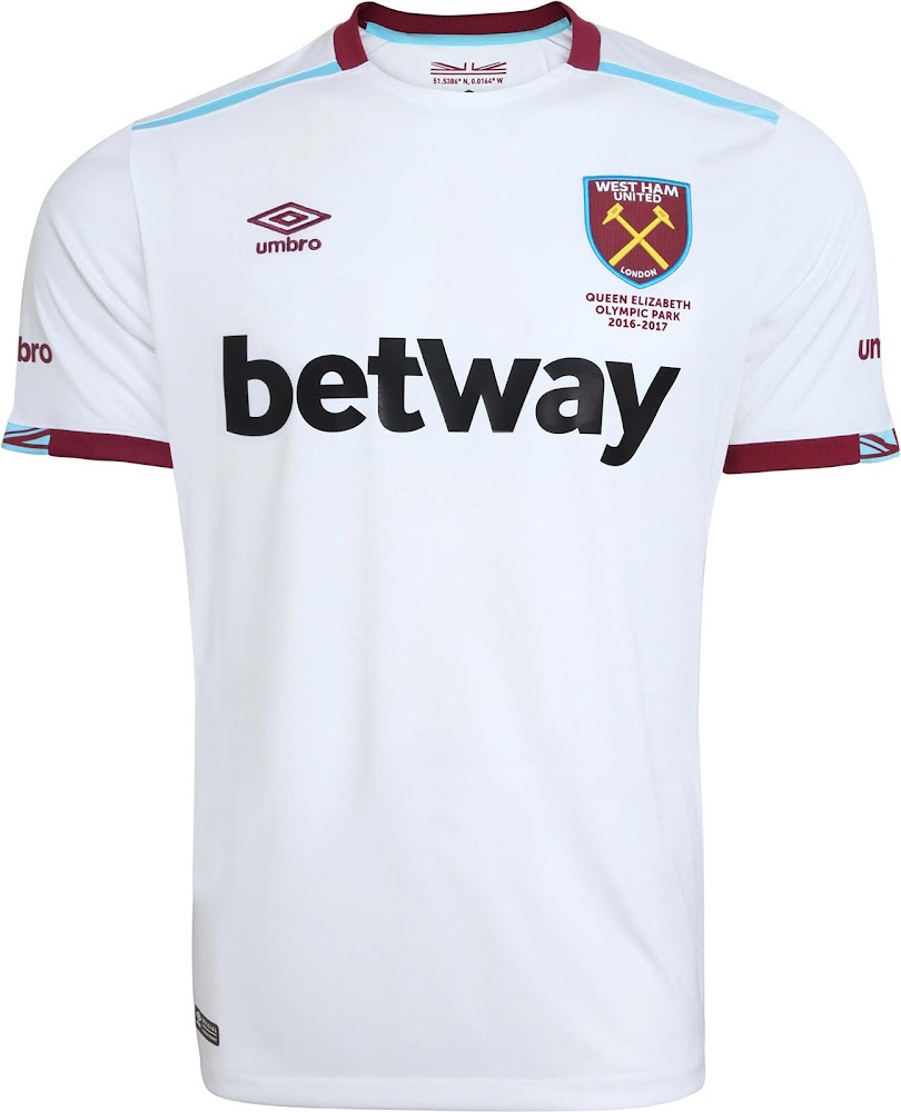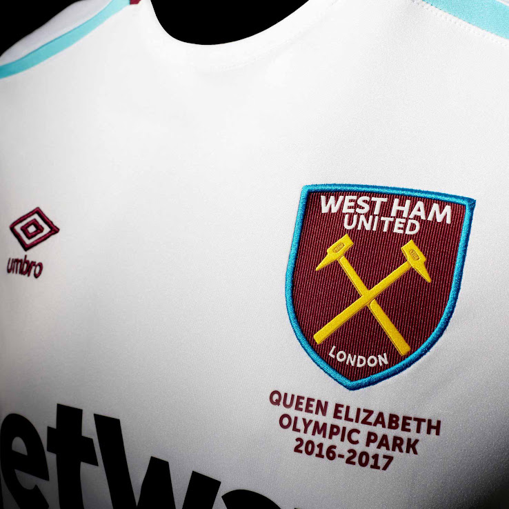 Das neue West-Ham-United-Wappen, in dem die Heimatstadt London eine große Rolle spielt, sitzt stolzerfüllt auf der linken Brust des West Ham 2016-17 Trikots. Des Weiteren ist unterhalb eine "Queen Elizabeth Olympic Park 2016-2017" Inschrift platziert, die den Umzug von Upton Park ins Stadion für Olympia 2012 feiert.