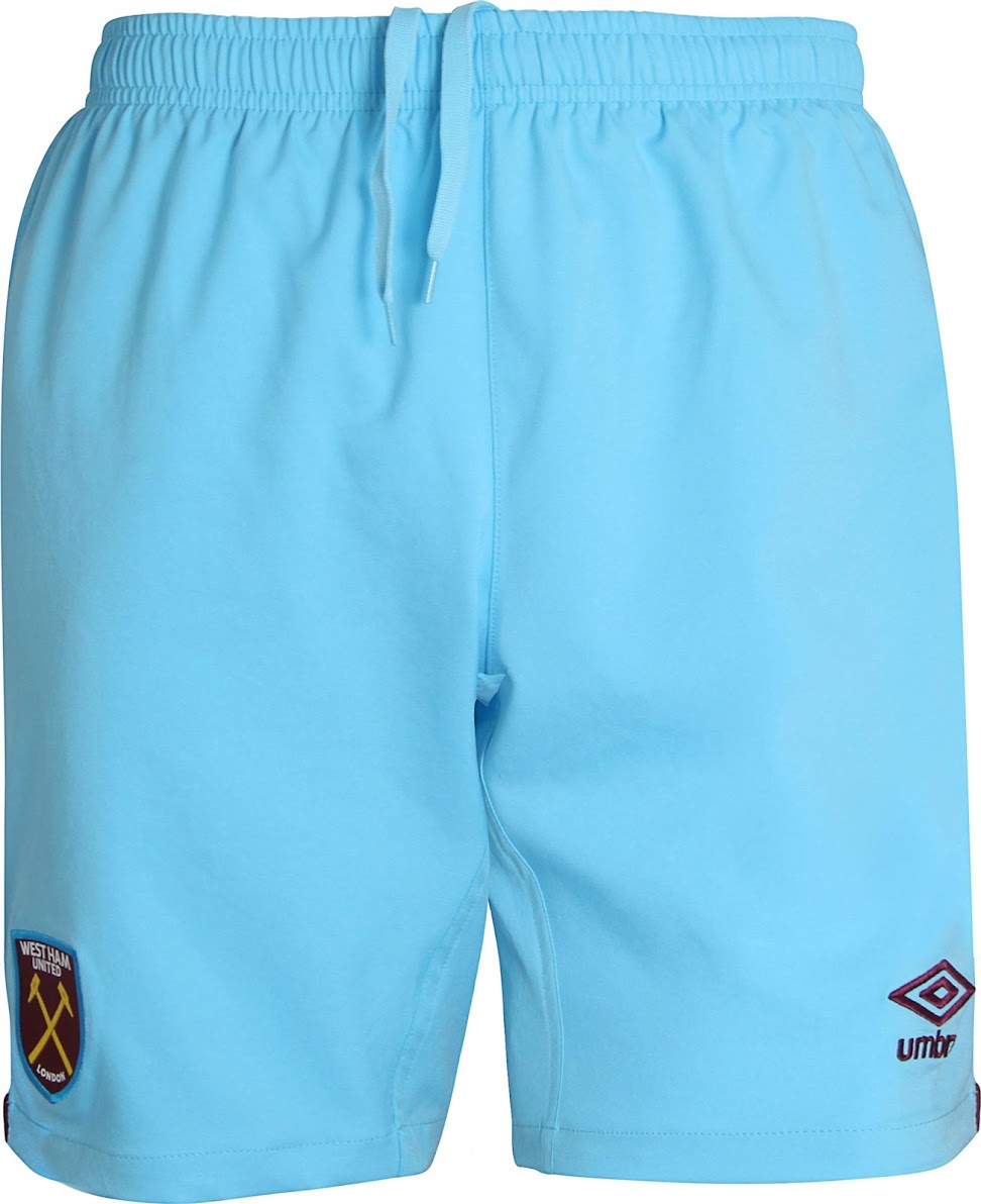 Blaue Hosen und weiße Stutzen komplettieren den Look des West Ham 16-17 Trikots.