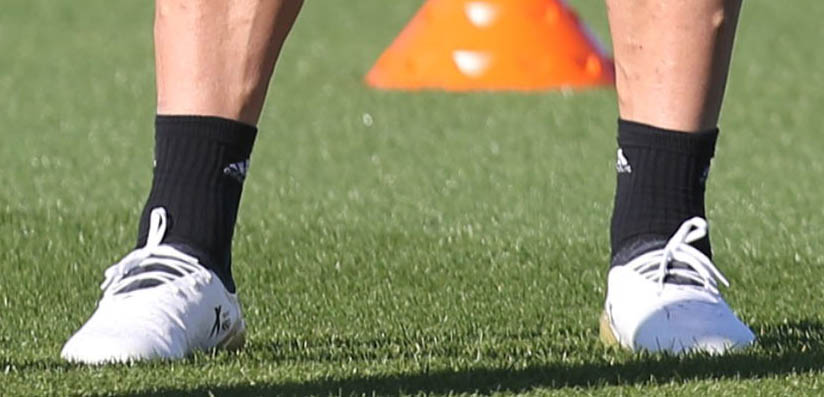 Ibrahimovics Fußballschuhe, die das umwerfende Design der weiß / schwarz / goldenen Adidas X 16.1 Stellar Pack Schuhe aufweisen, haben nur drei Schnürsenkelschleifen anstelle der fünf der normalen Version. Das Obermaterial scheint ebenfalls für den schwedischen Superstar angepasst zu sein, während das Bild das nicht mit Sicherheit verrät.