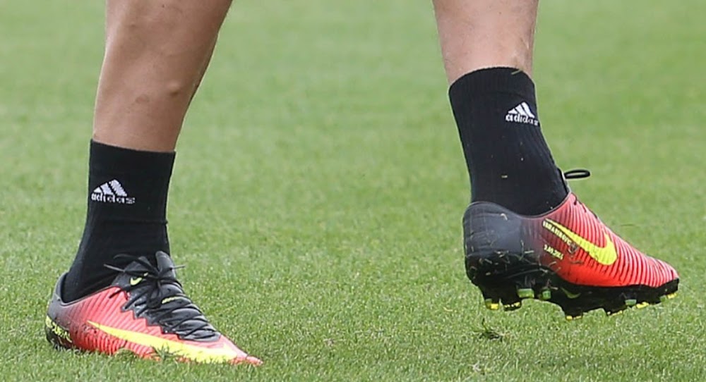 Ibrahimovic, der so gut wie seine ganze Karriere Nike Mercurial Vapor Fußballschuhe getragen hat, befeuerte Anfang 2015 Spekulationen über einen Markenwechsel, da er schwarz gefärbte Schuhe trug. Seit Beginn der Saison 2015-16 und bis zum ersten EM-2016-Spiel gegen Irland war Ibrahimovic wieder einmal zurück in normalen, erkennbaren Nike Mercurial Vapor Fußballschuhen.