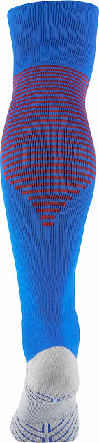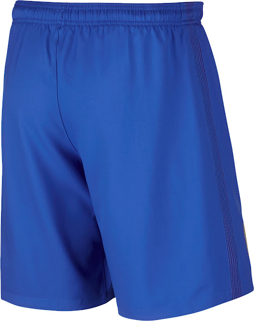 Blaue Hosen und Stutzen, beide mit weißen Logos, komplettieren den sauberen Look des Atlético Madrid 16-17 Trikots.