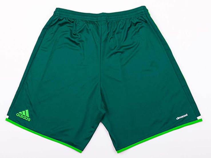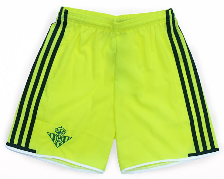 Das Real Betis 2016-2017 Trikot ist das auffälligste der Kollektion. Es ist in einem grellen Gelb gehalten und kombiniert das mit grünen Adidas-Streifen und Logos, einem einfarbigen Vereinswappen und grünen Details an den Ärmelenden. Wieder einmal ist die Hose in der gleichen Farbe wie das Trikot.
