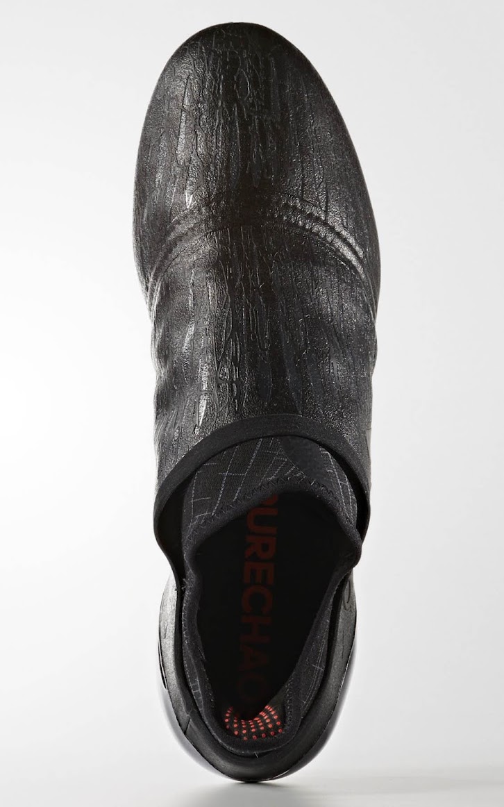Passend zum Rest des Packs, sind die Dark Space Adidas X 16+ Purechaos 2016-2017 Schuhe außen vollkommen schwarz.