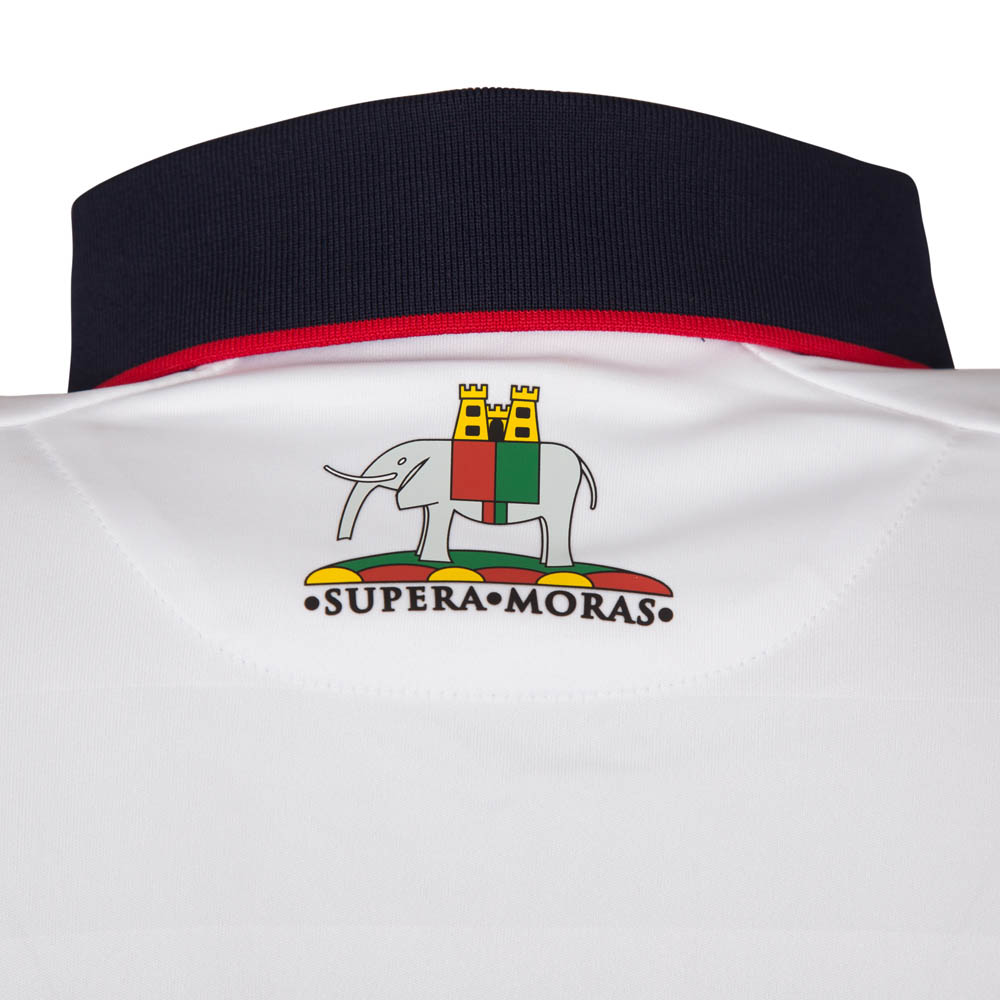 Das neue Bolton 16-17 Trikot ist weiß mit dunkelblau-roten Ärmelenden und einem klassischen dunkelblauen Kragen. Zudem setzt das Bolton 2016-17 Trikot auf sublimierte horizontale Linien, die innerhalb des Trikot-Stoffs verlaufen, während das überarbeitete Elefantenmotiv auf den Kragen zurückkehrt.