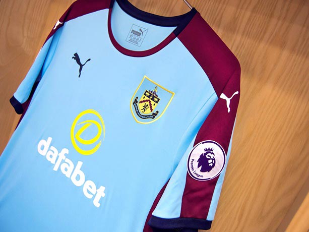 Das neue Burnley 2016-2017 Trikot, das von den kultigen Burnley-Heimtrikots inspiriert wurde, ist himmelblau mit einem weinroten Streifen auf jedem Ärmel und weiteren dunkelblauen und weinroten Details auf dem Kragen und den Ärmeln. Das Dafabet-Logo, das wie auf dem Heimtrikot gelb und weiß ist, sitzt mittig auf der Vorderseite des neuen Burnley-Trikots, unterhalb eines dunkelblauen Puma-Logos und dem Burnley-Wappen.