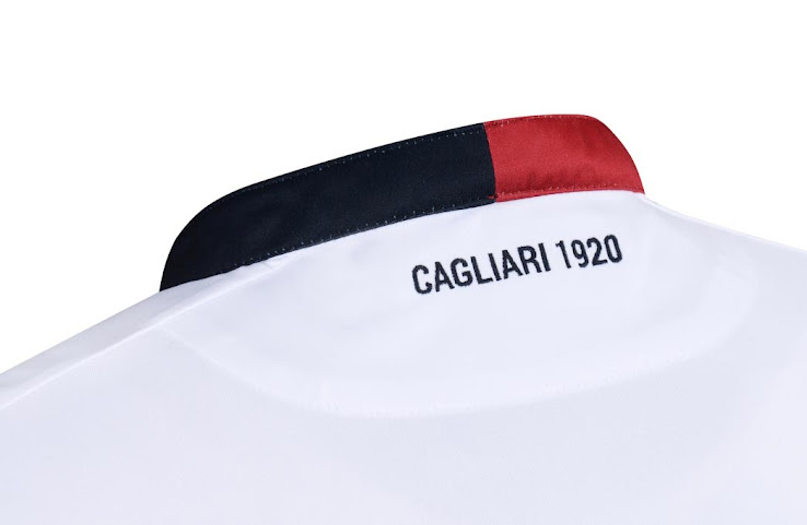 Das neue Cagliari-Calcio-Trikot, das ein interessantes Grundgerüst des Kragens aufweist, ist weiß mit einem dunkelblau-roten Streifen auf der linken Seite. Die zwei Farben werden ebenfalls auf dem linken beziehungsweise rechten Ärmelende des neuen Cagliari-Trikots verwendet.