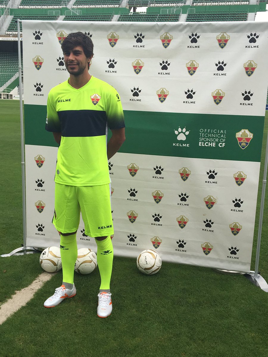 Hosen und Stutzen des neuen Kelme Elche 16-17 Trikots sind fluoreszierend gelb.