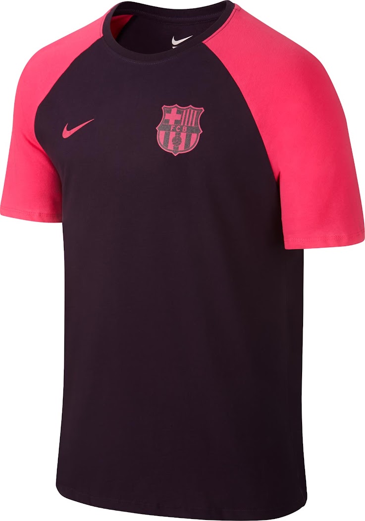 Eine vom Auswärtstrikot inspirierte Version des Barcelona 16-17 Match T-Shirts ist ebenfalls erhältlich. Diese ist dunkellila mit pinken Ärmeln und pinken Logos auf der Brust.