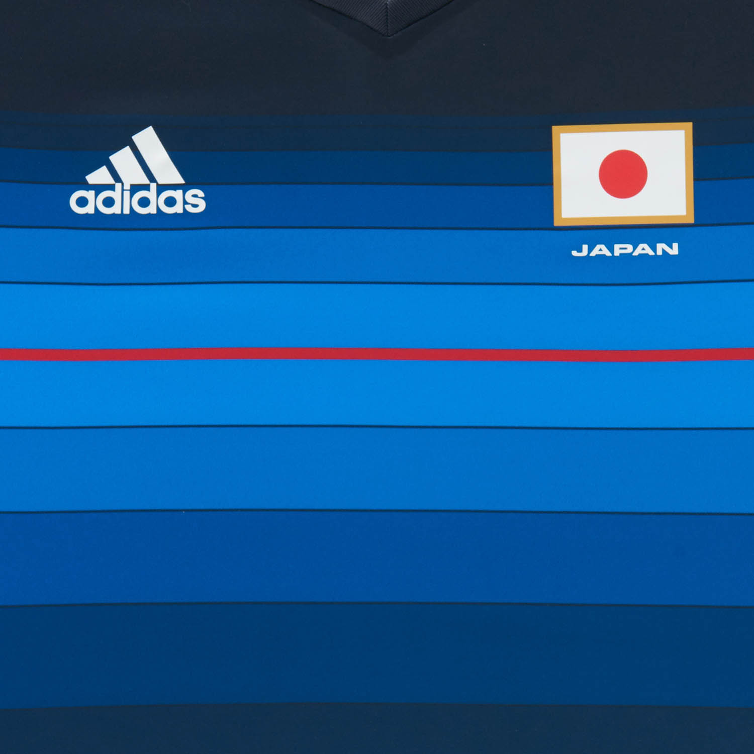 Das neue Japan 2016 Trikot, das im gleichen Design wie Japans 2015-2016 Adidas Trikot gehalten ist, setzt auf der Vorderseite auf einen einzigartigen Farbübergang, um herauszuragen.