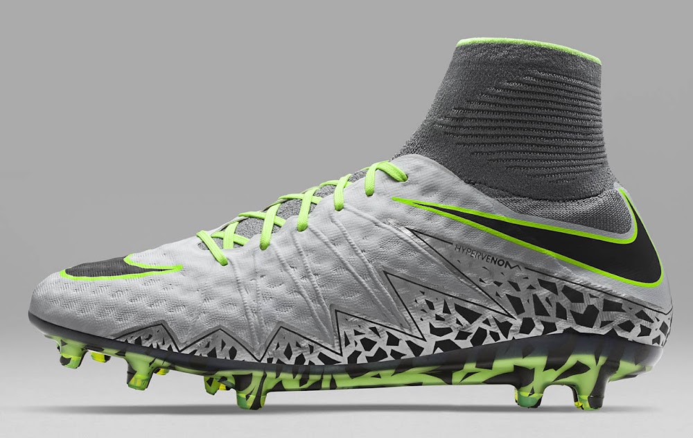 Die grauen Nike Hypervenom 2016-2017 Fußballschuhe, die Grau mit Schwarz kombinieren, haben ein spektakuläres Design der Außensohle, um auf dem Platz herauszuragen.