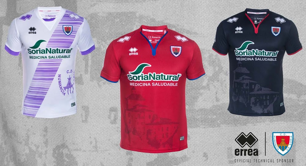 Dieses Bild zeigt die neuen Errèa CD Numancia 2016-2017 Trikots.
