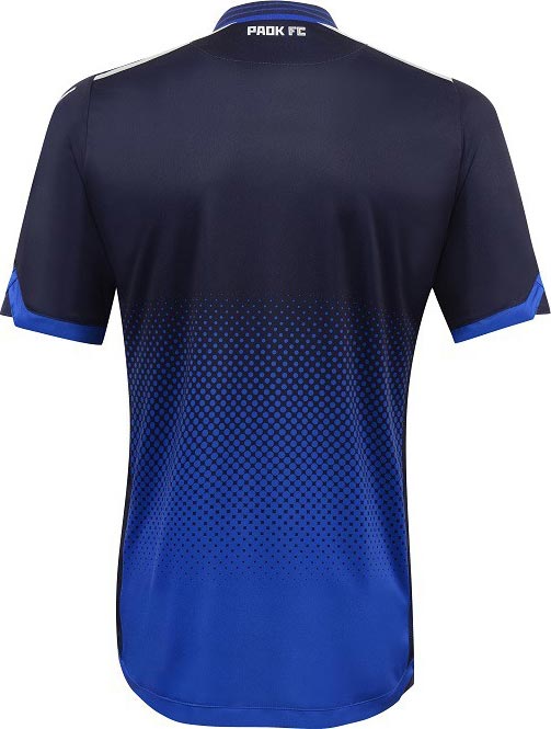 Zu guter Letzt führt das dritte neue PAOK-Trikot einen zeitgemäßeren Stil als die anderen beiden Trikots ein. Es weist einen Farbübergang von Dunkelblau zu einem helleren Blauton auf Vorder- und Rückseite auf, während die Ärmel einfarbig dunkelblau sind.