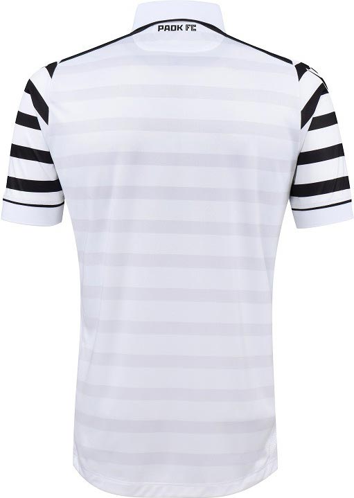 Das neue PAOK 16-17 Trikot, das insgesamt ein sehr klassisches Design hat, weist die kultigen schwarzen und weißen Streifen des Klubs auf, sowohl auf der Vorderseite als auch den Ärmeln. Die Rückseite ist größtenteils schwarz, um eine bessere Lesbarkeit der Spielernamen und -nummern zu ermöglichen. Eine dünne goldene Linie auf jeder Schulter und ein traditioneller Kragen komplettieren den coolen Look des PAOK 2016-17 Trikots.