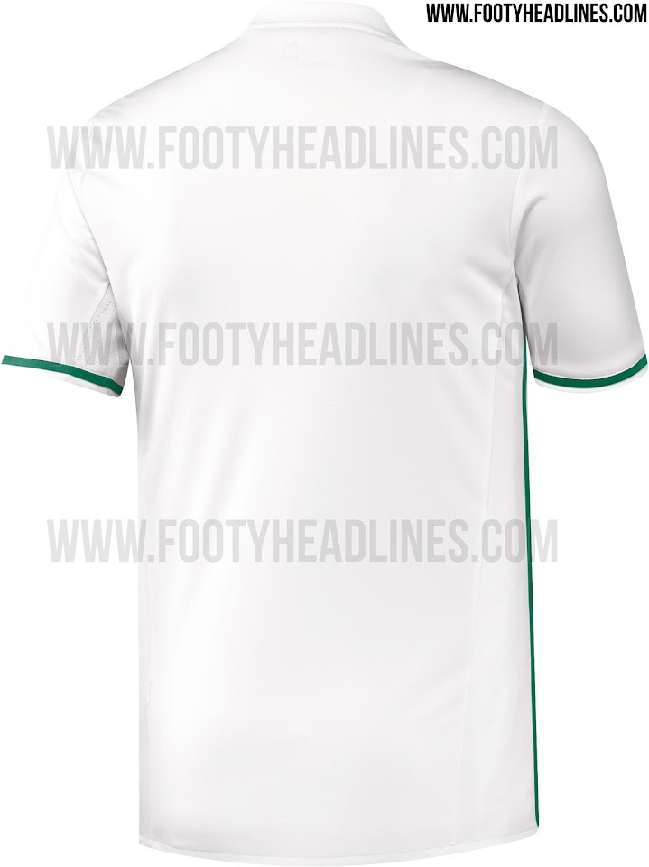 Das Adidas Rapid 2016-2017 Trikot, das auf dem neuen Template der Marke basiert, ist weiß mit vier grünen Streifen auf der Vorderseite und verzeichnet die Adidas-Streifen seitlich. Die Rückseite des neuen Rapid-Wien-Trikots ist einfarbig weiß. Weitere grüne Details auf den Ärmelenden und ein geknöpfter Kragen komplettieren das coole Design des neuen Rapid Wien 16-17 Trikots.