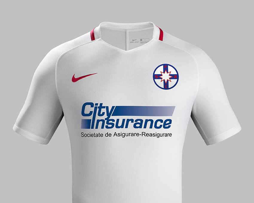 Die Steaua 2016-2017 Trikots weisen wieder das weiterhin ungewöhnliche neue Logo auf, nachdem ein Gerichtsentscheid, der die Erlaubnis erteilte, das ursprüngliche Steaua-Bukarest-Logo zu verwenden, dem Verteidigungsministerium Recht gab.