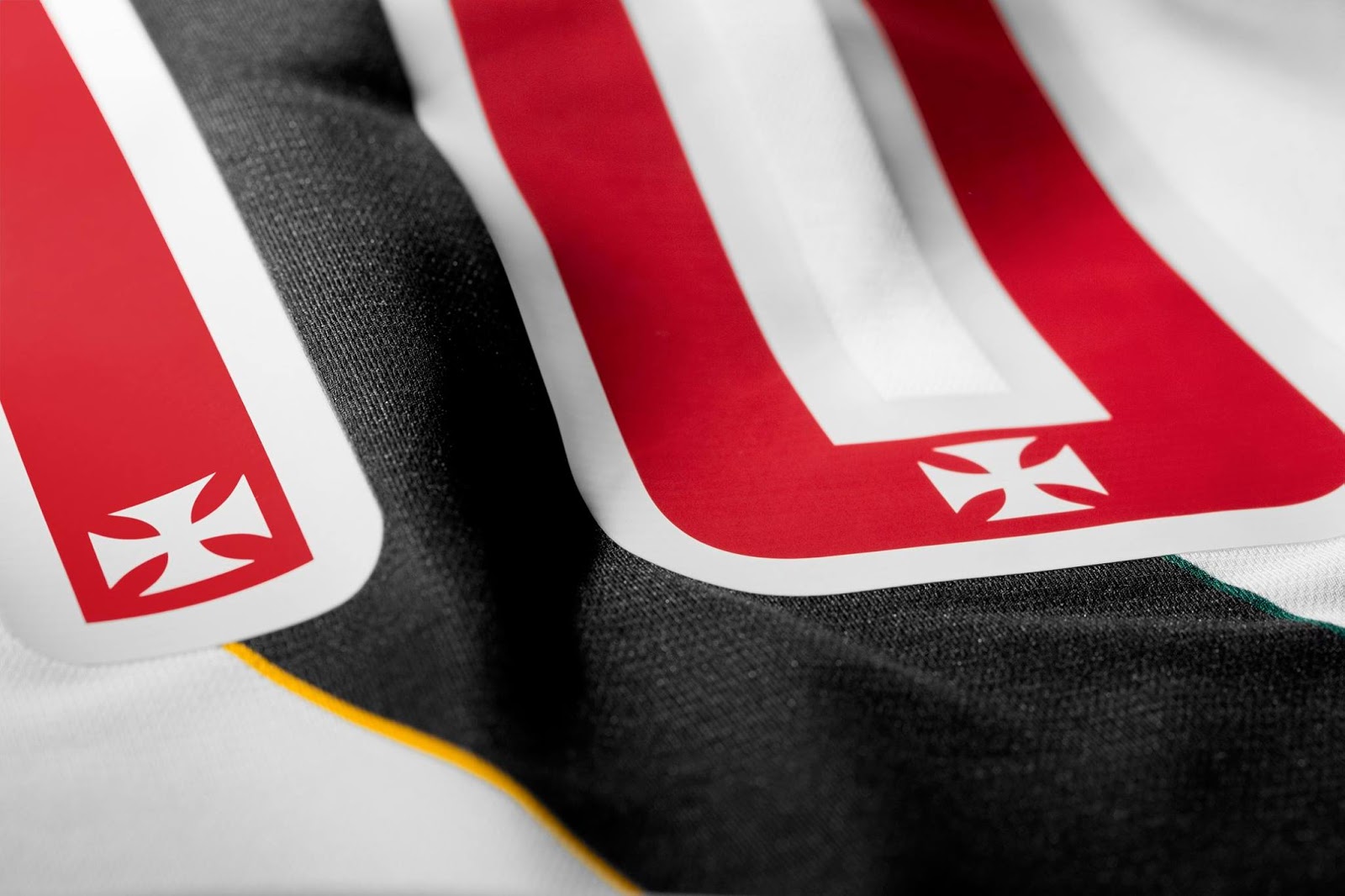 Das neue, klassische, weiß-schwarze Vasco-da-Gama-Trikot, das Olympia 2016 in Rio Ehre erweist, setzt auf eine dünne gelbe Linie, die auf beiden Seiten des kultigen diagonalen Streifens auf der Vorderseite hinzugefügt wurde, um Brasiliens berühmte Heimtrikot-Farbe zu ehren. Es offenbart bei näherer Betrachtung viele weitere Details wie ein kleines Malteserkreuz auf der Rückseite mit einer Karte Brasiliens im Inneren.