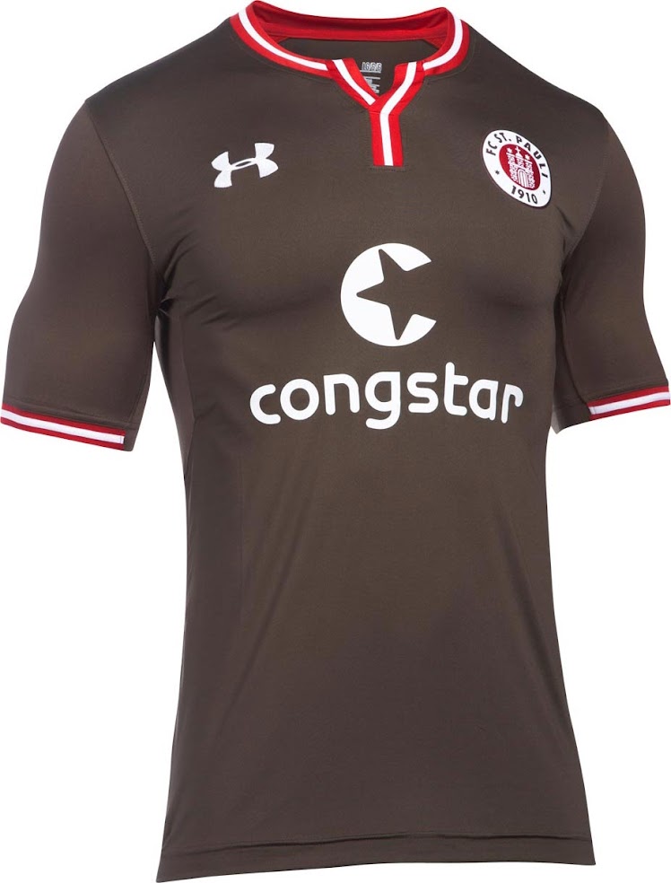 Für ihr allererstes St. Pauli Trikot hat sich Under Armour entschieden, auf Nummer sicher zu gehen. Das St. Pauli 2016-17 Trikot ist vollkommen braun - abgesehen von rot-weißen Details an den Ärmelenden und dem Kragen. Die UA- und St.-Pauli-Logos sind auf dem St. Pauli 2016-2017 Trikot ziemlich hoch platziert, wobei das Congstar-Sponsorenlogo unterhalb positioniert ist.