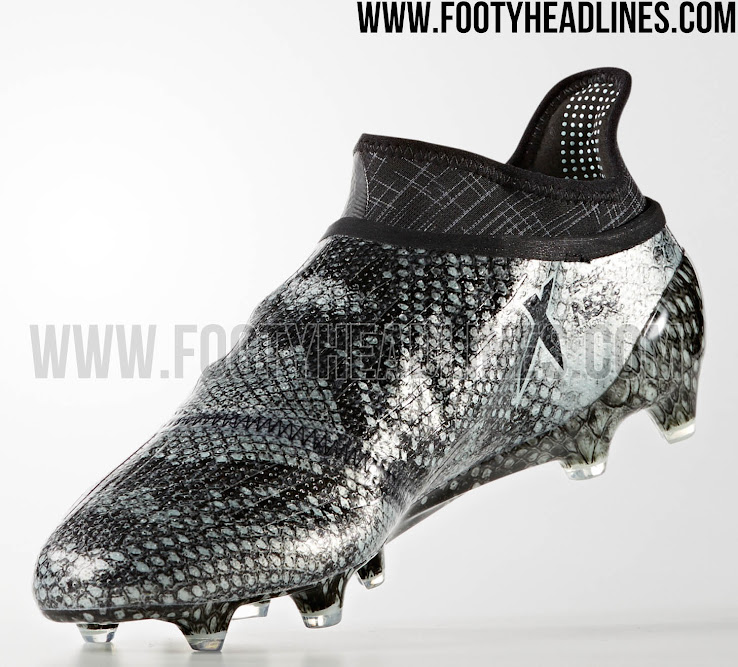 Während das Design besonders aus sich herausgehend ist, sind die eigentlichen Features der Schlangenhaut Adidas X 16+ PureChaos Schuhe identisch mit denen aller zuvor enthüllten Farbvarianten. Sie weisen ein Schnürsenkel bedeckendes Grundgerüst, um eine größere, unverfälschte Schussfläche zu bieten, und einen externen Heel Counter für einen verbesserten Sitz und Schutz auf. Andere Features, einschließlich der Außensohlen-Form und -Material als auch das Obermaterial sind identisch mit der X 16.1 Version.