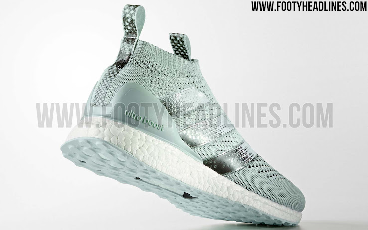 Die neuen Adidas Ace 16+ PureControl Ultra Boost Schuhe, die hauptsächlich grün sind, wurden direkt von den Viper Pack Adidas Ace 16+ PureControl Fußballschuhen inspiriert, auch wenn der Schlangenhaut-Druck weniger hervorgehoben ist und nur innerhalb der seitlichen Adidas-Streifen und den zwei Laschen an der techfit-Socke verwendet wird.