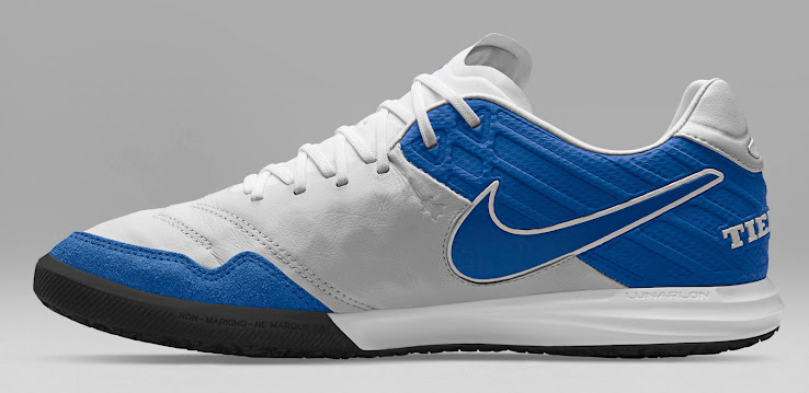 Der Nike TiempoX Schuh ist der eleganteste Schuh der Kollektion. Der Nike TiempoX Heritage Fußballschuh, der eine weiße Grundlage mit königsblauen Applikationen kombiniert, wurde vom Air Max 1 inspiriert.