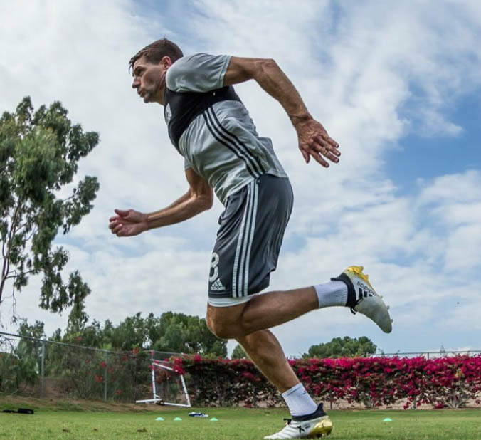 Update: Steven Gerrard, der gestern zum ersten Mal nach einer Verletzung mit LA Galaxys Team trainiert hat, wurde in Adidas X PureChaos Schuh gesehen, womit ein Wechsel zur Chaos-Reihe angedeutet wird, nachdem er einer der ersten Spieler war, die den Stellar Pack Ace getragen haben. Er könnte die X-Reihe im ersten Playoff-Spiel der Saison gegen Real Salt Lake debütieren.