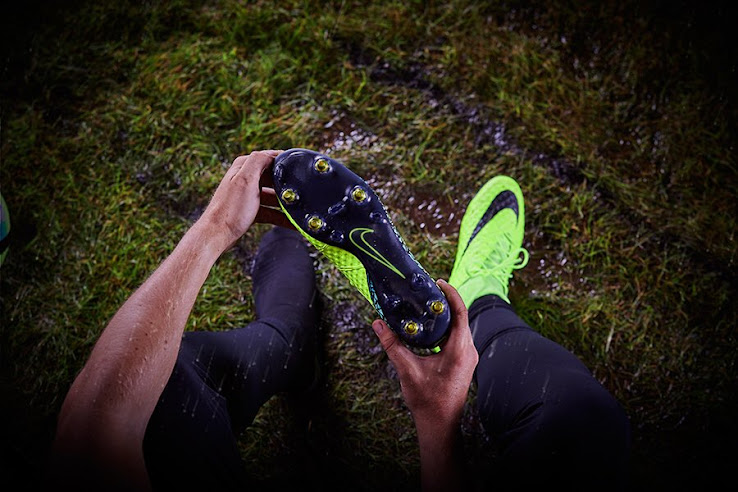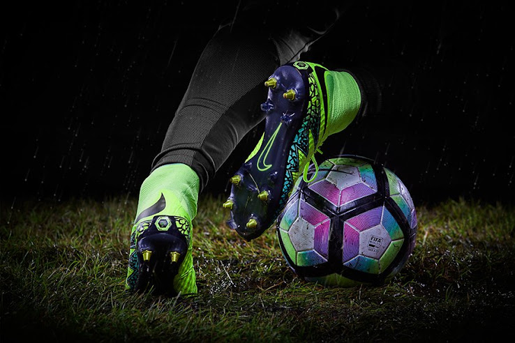Die Nike 16-17 Hypervenom, Magista und Tiempo Anti-Clog Schuhe, die im Design der Schuhe von Nikes EM 2016 Spark Brilliance Fußballschuh-Kollektion gehalten sind, wurden entwickelt, um zu verhindern, dass sich Dreck an der Platte von Fußballschuhen festsetzt, indem eine besondere Außensohle und Stollen zum Einsatz kommen.