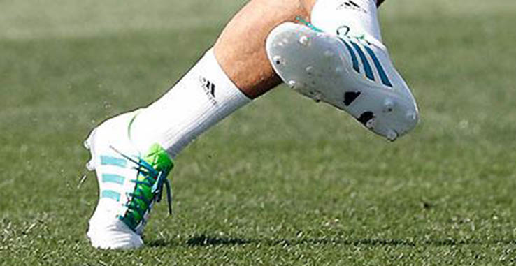 Moratas neue Schuhe, die die Hauptfarben Weiß und Blau kombinieren, ragen dank einer grünen Zunge heraus. Technisch gesehen sind Moratas Fußballschuhe identisch mit den normalen Second-Gen Adidas-Gloro-Schuhen, während die Farbvariante maßgeschneidert für Morata ist.