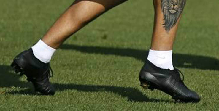 Aleix Vidal trug eine modifizierte, vollkommen schwarz gefärbte Version der Speed-Fußballschuhe mit einer abgeschnittenen Dynamic-Fit-Socke, die auf den Next-Gen Nike Mercurial Superfly 5 Schuhen basieren.