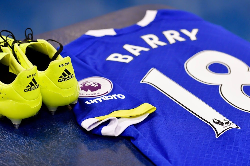 Evertons Gareth Barry, der vor 18 Jahren sein Premier-League-Debüt für Aston Villa gefeiert hat, lief am Samstag gegen Middlesbrough in einem besonderen Paar von Adidas-Ace-Schuhen auf, um sein 600. PL-Spiel zu feiern. Dieses Spiel katapultierte ihn auf den dritten Platz der Allzeitauftritte, und auf die Spitze unter jetzigen Spielern.