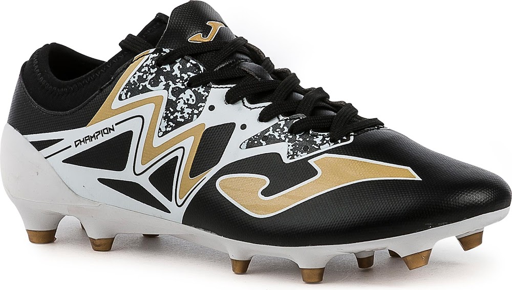 Das Obermaterial des Joma Champion Max, das eine schwarze Grundlage mit weißen und goldenen Applikationen kombiniert, ist ziemlich offensichtlich vom letztjährigen Adidas X 15 inspiriert worden - selbst einschließlich des typischen "X Cage" von Adidas, der einigermaßen kopiert wurde.