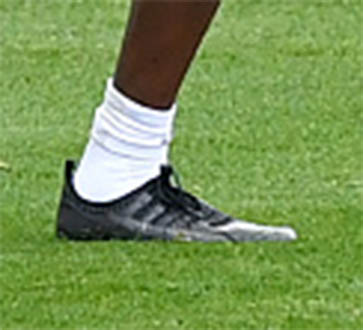 Hier sind zwei Nahaufnahmen der Fußballschuhe, die heute von Yaya Touré getragen wurden.