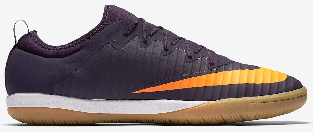 Die neuen Nike MercurialX Finale Fußballschuhe sind hauptsächlich lila, weisen einen hellen, orangen Swoosh und eine gummifarbene Außensohle auf. Die Zwischensohle ist weiß, genau wie auf der MercurialX-Proximo-Version.