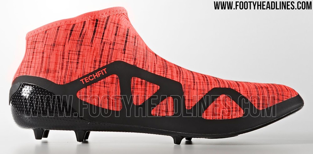 Der Adidas Glitch Innenschuh, der aus dem flexiblen techfit-Material besteht, ist in vier Farben (Schwarz, Blau, Rot, Weiß) und zwei unterschiedlichen Höhen erhältlich - eine davon gleicht dem, was für den Adidas X 16+ PureChaos verwendet wird, während die andere höher ist.