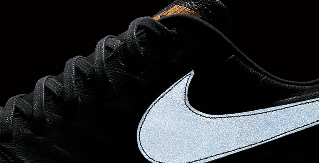 Die schwarze Edition der Nike Tiempo Roshe Schuhe, die ein völlig schwarzes Obermaterial für Details wie das Nike-Markenzeichen auf der Zunge mit Metallic-Gold und für die Zwischen- und Außensohle mit Weiß kombiniert, sich aber auch durch einen reflektierenden Swoosh auszeichnet, wäre als Fußballschuh bestimmt beliebt.