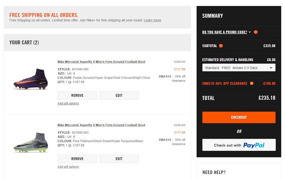 Es ist nicht ungewöhnlich, dass Nike alte Fußballschuhe und Trikots in ihrem Onlineshop für weniger als den üblichen Preis anbietet, aber es ist recht überraschend zu sehen, dass die US-Marke ihre Next-Gen Schuhe (diesen Sommer veröffentlicht) für die Hälfte des Originalpreises verscherbelt, wobei manche Schuhe wie der Next-Gen MagistaX für die Halle noch billiger ist.