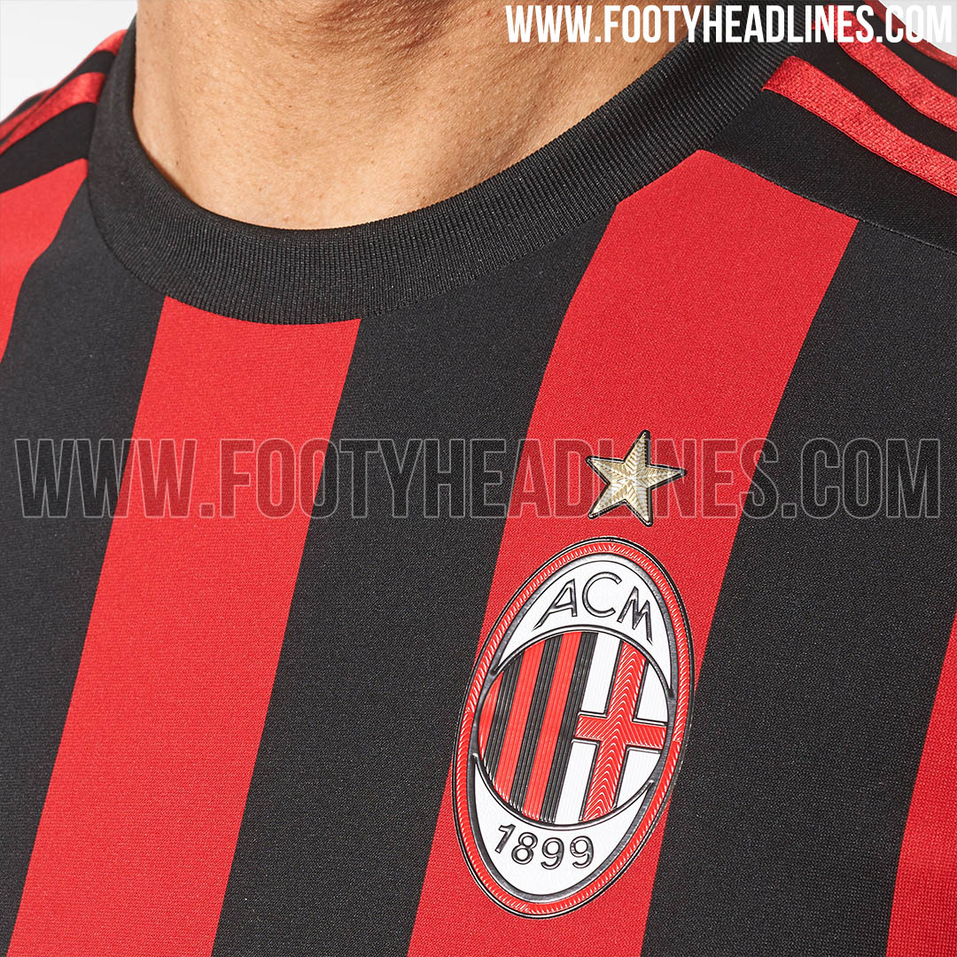 Milans 2017-2018 Trikot weist die gleichen Hauptfarben wie vorherige Heimtrikots auf - Victory-Rot und Schwarz.