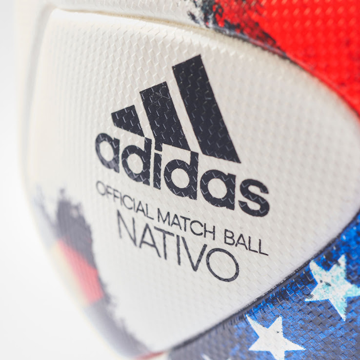 Der Adidas Nativo MLS Ball, der auf Adidas jüngstem Fußballtemplate basiert, das beispielsweise für die neuesten Fußbälle für die europäische WM-Qualifikation und den Confederations Cup verwendet wird, ist hauptsächlich weiß und baut sowohl die US-amerikanische als auch die kanadische Flagge in seiner "X"-artigen Panelform ein.