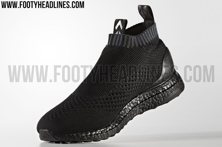 Der neue Ace 16+ PureControl Ultra Boost, der gewissermaßen von der Checkered-Black-Farbvariante der Adidas Ace 17+ PureControl Fußballschuhe inspiriert wurde, geht beim hauptsächlich schwarzen Look der Rasenversion noch weiter, womit die erste wahre Blackout-Farbvariante in der Geschichte des Sneakers geboten wird
