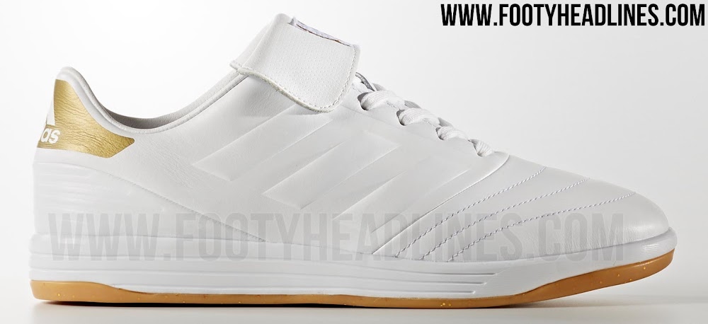 Passend zum Rest der Limited Edition Adidas Copa Crowning Glory Kollektion, kombiniert der weiß-goldene Adidas Copa 17 Turnschuh ein sanftes geschmeidiges Obermaterial mit subtilen goldenen Details und einer Gummiaußensohle.