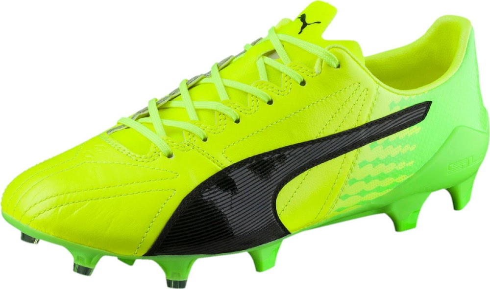 Die allerersten Puma evoSPEED 17 SL K-Leder Schuhe, die zwei helle Gelb- und Grüntöne mit schwarzen Markenzeichen kombinieren, sind recht auffällig. Die Schuhe haben ein Obermaterial aus Känguruleder, aber weisen die gleiche Farbvariante wie ihr synthetisches Gegenstück auf.