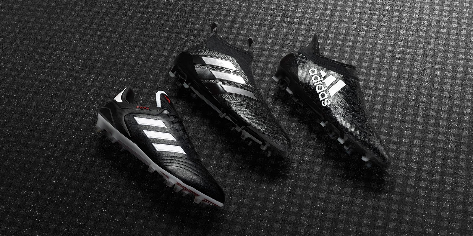 Das Motiv des Adidas Chequered Black Packs, das sich auf die Ace, Copa und X Fußballschuhe bezieht, die Teil dessen sind, ist eine dunkle Grundlage mit weißen Akzenten und einem subtilen Schachbrettmuster, das die Gesamtheit des Obermaterials einhüllt.