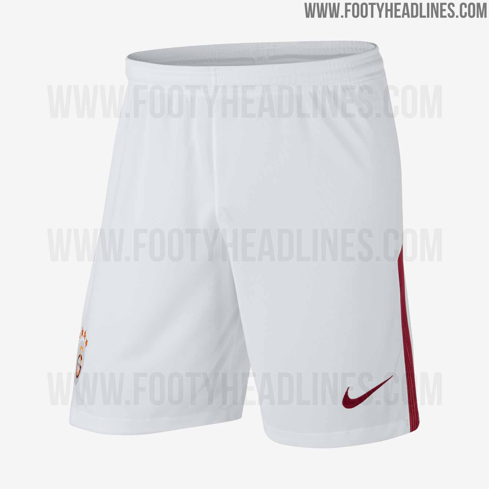 Weiße Hosen und Stutzen komplettieren den sauberen Look des Galatasaray 2017-2018 Trikots.
