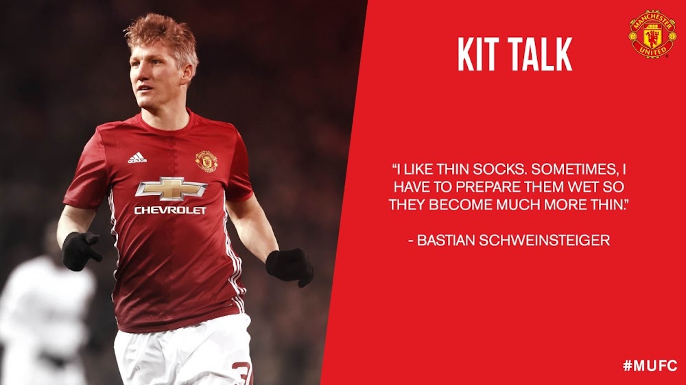 Bastian Schweinsteiger ist der nächste Spieler, der ManUs "Kit Talk"-Fragen beantwortet, nachdem Ander Herrera in Manchester Uniteds erstem Kit Talk bereits enthüllt hatte, dass er, seit er acht Jahre alt ist, die gleichen Schienbeinschoner trägt. Die Kit Talk Reihe befragt Manchester Uniteds Spieler über die Geheimnisse ihrer Schuhe, Trikots und anderer Ausrüstung.