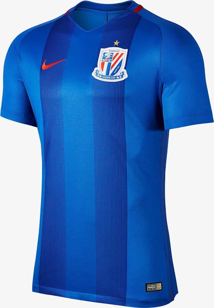 Das neue Shanghai Shenhua 2017 Trikot, das wie alle anderen Trikots der Liga von Nike hergestellt wird, weist ein modernes Design auf, nachdem das letztjährige Trikot klassisch war. Shanghai Shenhuas königsblaues 2017-Trikot setzt auf dunklere blaue vertikale Streifen auf der Vorderseite und weist auffällige rote Applikationen auf.
