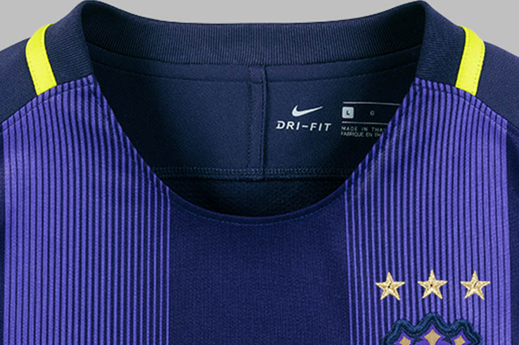 Das zweite Sanfrecce Hiroshima 2017 Trikot, das kein bisschen weniger modern ist, zeichnet sich durch ein auffälliges Design in Knallgelb und Lila aus.